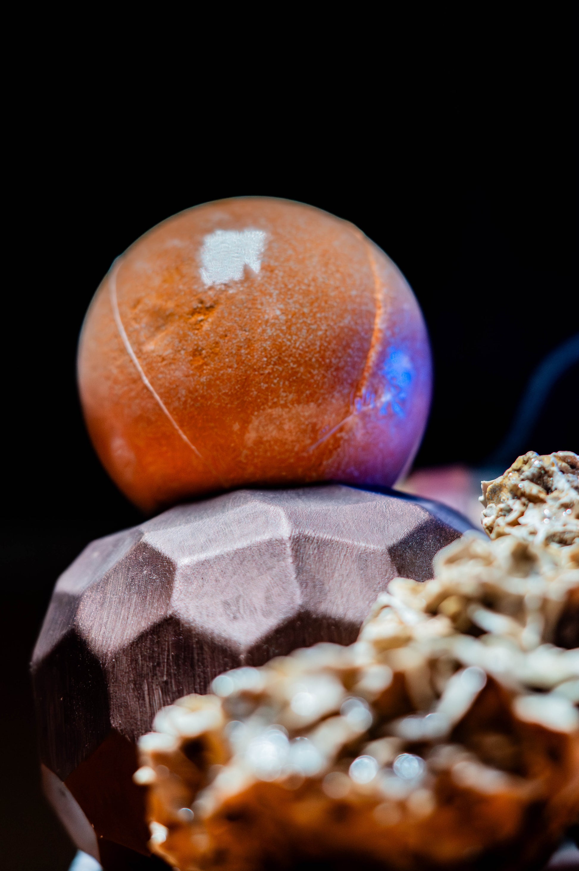 Notre bombe de bain standard mesure 7 cm de diamètre et pèse 300 g, parfaitement dosée pour un bain relaxant. Chaque bombe est élégamment présentée dans un écrin noir.